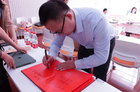 校庆大会结束后,校友们返回学院签到,大家纷纷签名,并留下了自己的寄语:“蒸蒸日上,更进一步”“七秩快乐,在谱华章”“传播研究院,永远传播快乐,一直研究幸福”。