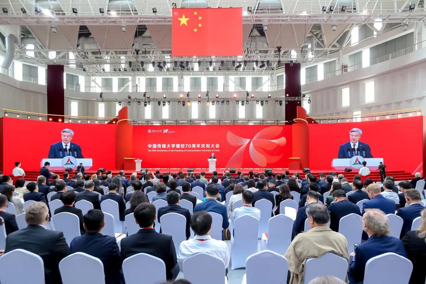 上午,传播研究院教师及校友代表受邀参加中国传媒大学建校70周年庆祝大会,听取了教育部党组书记、部长怀进鹏宣读习近平总书记给中国传媒大学全体师生的回信,以及怀进鹏部长、北京市委常委、教育工委书记于英杰、中国传媒大学党委书记廖祥忠、中国人民大学党委书记张东刚等领导、校友、企业代表的讲话。